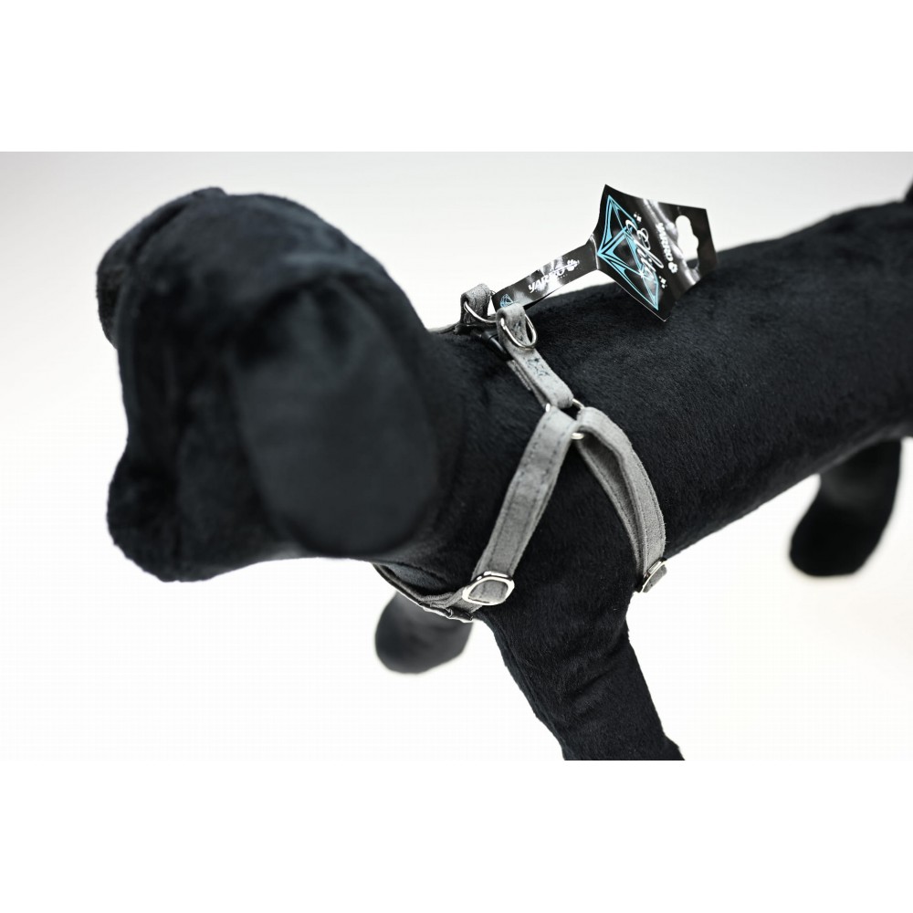 Opis główny: Eleganckie szelki typu glamour, które łączą funkcjonalność z modnym designem. Wykonane z gładkiego materiału z imitacją pikowania, które nadają im wyjątkowy wygląd. Regulowane w dwóch miejscach – na szyi i klatce piersiowej – pozwalają na idealne dopasowanie do psa. Zapięcie na grzbiecie ułatwia szybkie zakładanie, a stylowy szary kolor dodaje elegancji.