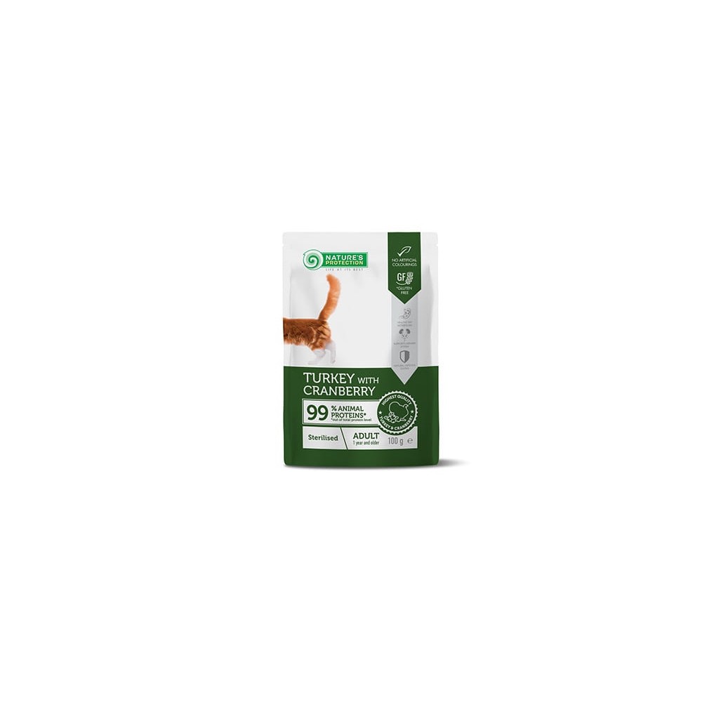 NATURES PROTECTION SASZETKA KOT STERYLIZOWANY INDYK ŻURAWINA 100G