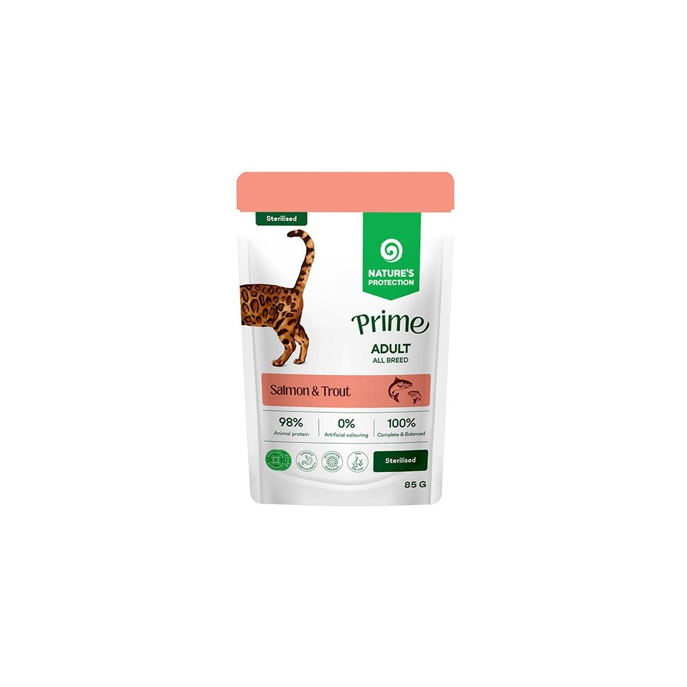 Miękkie kawałki w sosie przypadną do gustu nawet wybrednym lub mniej spragnionym kotom. Łosoś i pstrąg to łatwostrawne, pożywne źródła białka zwierzęcego, które pomagają utrzymać napięcie mięśni i dostarczają dziennej energii. Soczysty sos zapewnia dodatkową wilgotność, co jest szczególnie ważne dla kotów sterylizowanych, które piją mniej i są bardziej narażone na nadwrażliwość dróg moczowych.