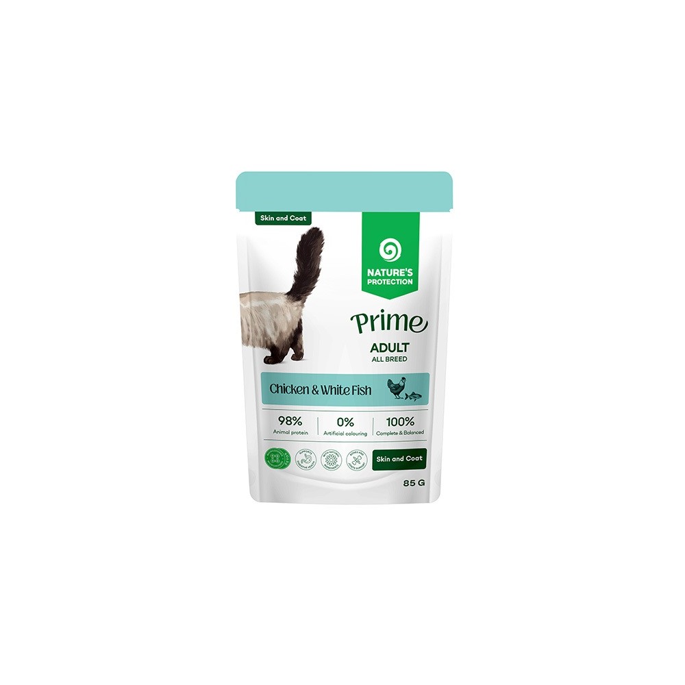 Kurczak jest głównym źródłem wysokiej jakości białka, które wspomaga utrzymanie napięcia mięśniowego. Łosoś – bogaty w kwasy tłuszczowe omega-3, które wspomagają zdrową skórę, lśniącą sierść i silny układ odpornościowy. Tuńczyk dostarcza dodatkowych wartości odżywczych. Wspomaga zdrowie serca, skóry i sierści, a także nadaje karmie wyjątkowy smak. Karma mokra pomaga utrzymać prawidłowe nawodnienie, co jest ważne dla kotów, które naturalnie piją mniej wody.